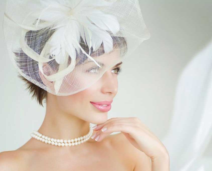 Perlen und Schleifen eignen sich vor allem für Hochzeitsfrisuren im Herbst und Winter. Für 20er und 50er Jahre-Style kann Haarmonie & Beauty Ihnen Außenrollen und Wasserwellen ins Haar einarbeiten – was sich auch toll für Vintage-Hochzeiten eignet!