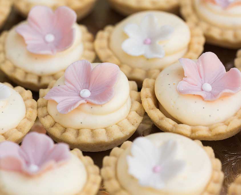Lassen Sie sich auch hierfür vom vorhandenen Portfolio inspirieren oder ganz persönliche und personalisierte Cupcake-Dekorationen entwerfen. Neben Cupcakes können Sie für Ihre Candy-Bar auch aus Cookies, Petit Fours, Miniküchlein, Tartes, Macarons, Cake Pops sowie Baiser-Häppchen auswählen.