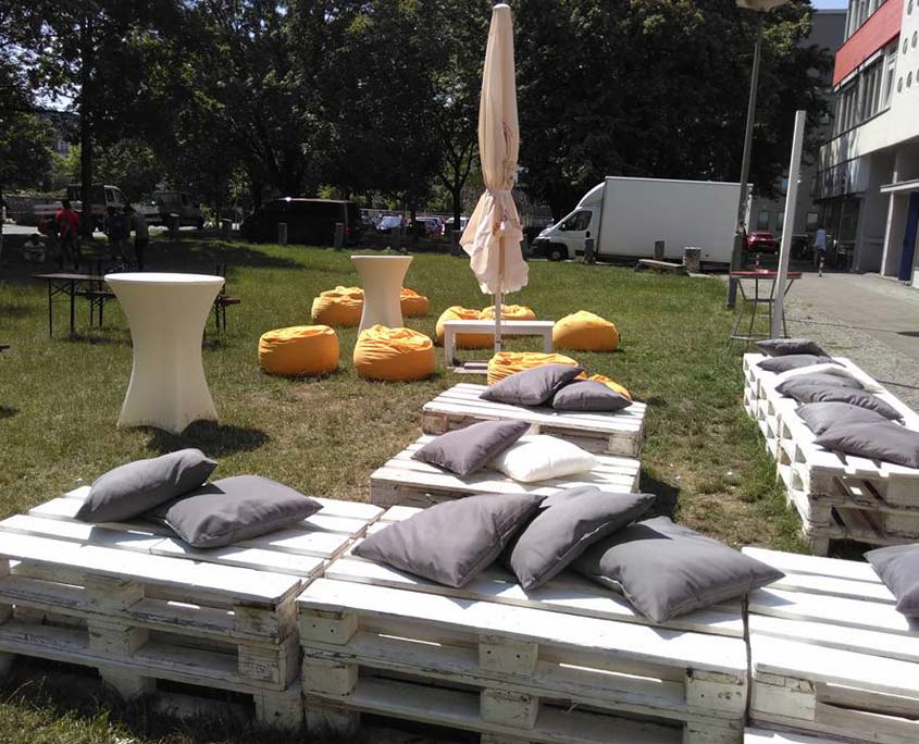 Die Berliner Hochzeitslocation bietet Ihnen als Brautpaar außerdem noch die Möglichkeit, die große Rasenfläche, direkt vor dem Eventspace, mit zu nutzen. Hier haben Sie und Ihre Hochzeitsgäste 600 m² zur Verfügung. Verbringen Sie schöne Stunden unter freiem Himmel, richten Sie kulinarische Highlights an, planen Sie Unterhaltungsprogramm – was immer Sie sich für Ihren großen Tag in Berlin wünschen.