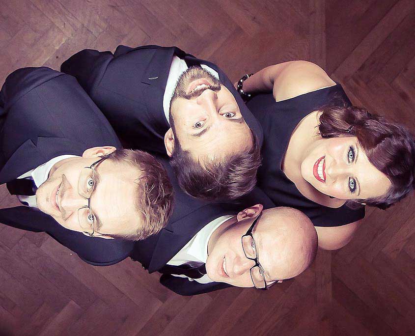 Die Band trifft getreu ihrem Namen immer den perfekten Ton. Mit mehr als 300 Songs und einer großen Leidenschaft für das Neuarrangieren außergewöhnlicher Titel, können Sie Pitch Perfect in verschiedenen Kombinationen buchen: als Duo, als Jazzband oder als Partyband – je nachdem, wie Sie die musikalische Begleitung in Ihre Hochzeit in Berlin integrieren möchten.