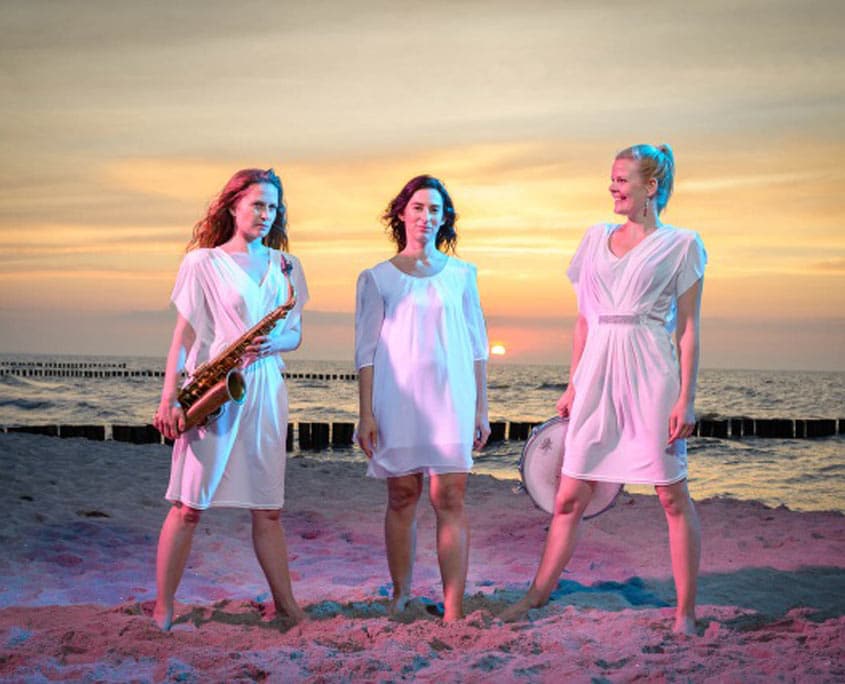 Für noch mehr Frauenpower sorgen die beiden Saxophonistinnen und begabten Sängerinnen Daniela Steidle und Tanya Bartels. Ihre fantastischen Saxophonsounds mischen sich mit den exzellenten Schlagzeug-Künsten von Lizzy Scharnofske zu einem musikalischen Meisterwerk zusammen. Ihr wunderbares Soundgefühl, ihr Groove und ihr Talent machen sie zu einer wunderbaren Wahl für die Traumhochzeit in Berlin. Lizzy beherrscht nicht nur das klassische Schlagzeug wie keine Zweite, sie sorgt auch für besondere Live-Action der Konzerte von Pearls of Berlin – denn sie kann etwas, das in Deutschland einzigartig ist: Lizzy produziert während des Auftritts dieser herausragenden Hochzeitsband Live-Beats mit Body Pads, die sie an ihrem Körper trägt.
