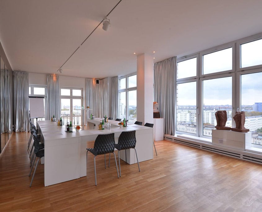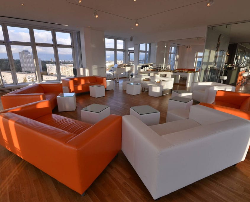 Für diese Location sollten Sie und Ihre Hochzeitsgesellschaft schwindelfrei sein. Tanzen bis in die Nacht – und zwar über den Dächern von Berlin! Wenn Sie schon immer davon geträumt haben, über den Wolken zu heiraten, ist PlaceOne die perfekte Hochzeitslocation. Hier können Sie über die Wahrzeichen von Berlin blicken und einen atemberaubenden Ausblick auf die Hauptstadt von Deutschland, wie zum Beispiel den Fernsehturm, genießen. Die Panorama Tanzbar befindet sich im Haus Berlin – und zwar in der 13. Etage!