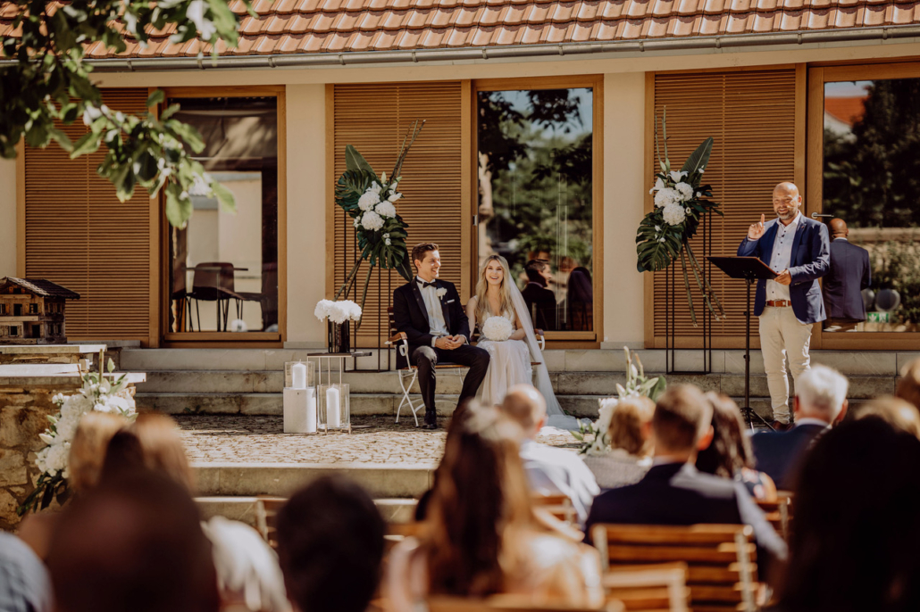 Die Trauung ist einer der schönsten Momente im Leben eines Paares. Hier nehme ich mir die Zeit, um die Liebesgeschichte des Paares in Worte zu kleiden. Mit einem Mix aus Emotionen, Humor und persönlichen Anekdoten wird es mir gelingen, diesen Tag zu einem unvergesslichen Fest der Liebe zu machen.