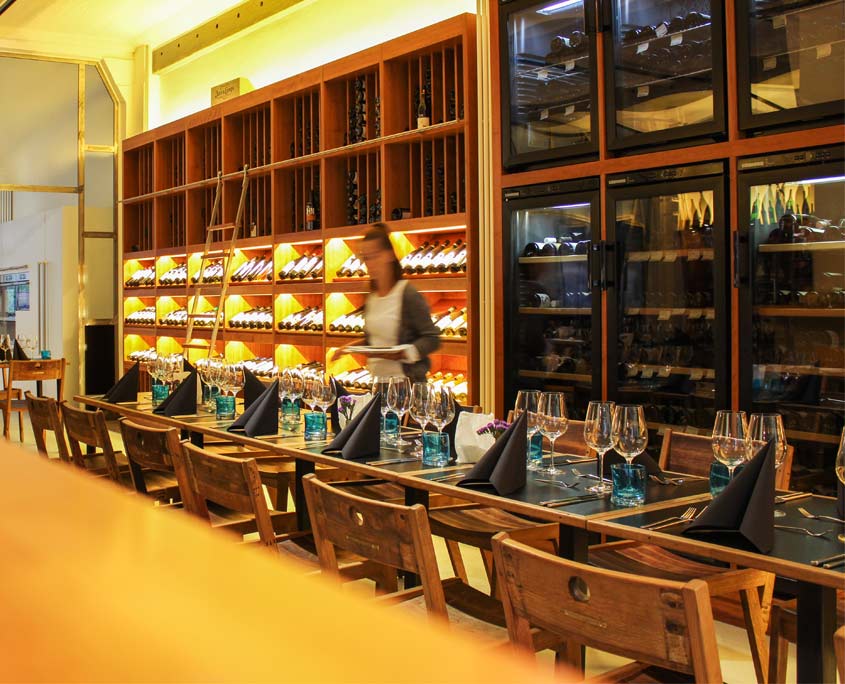 Weinhandel, Restaurant bzw. Weinbar, Mittagstisch mit täglich wechselndem Speiseangebot und einer Genussschule mit Ralf Zacherl und Mario Kotaska.