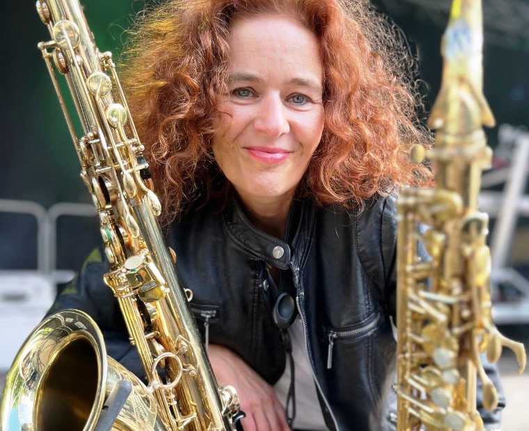 Solokünstlerin mit Saxophon und Vocals, auch als Duo buchbar, auch mit DJ-Programm buchbar.